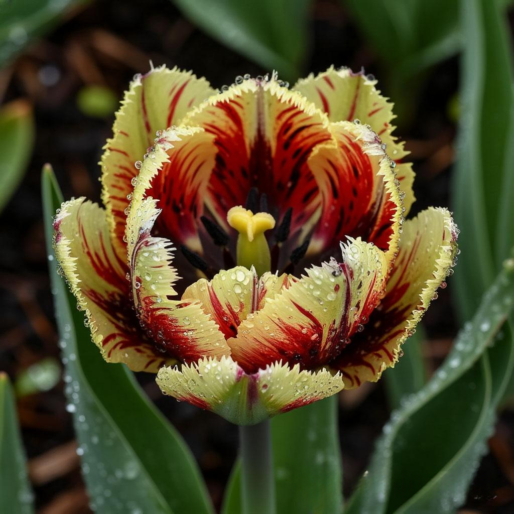Попугаевые (Parrot): цветут поздней весной, имеют цветки с изрезанными, волнистыми лепестками, напоминающими перья попугая.